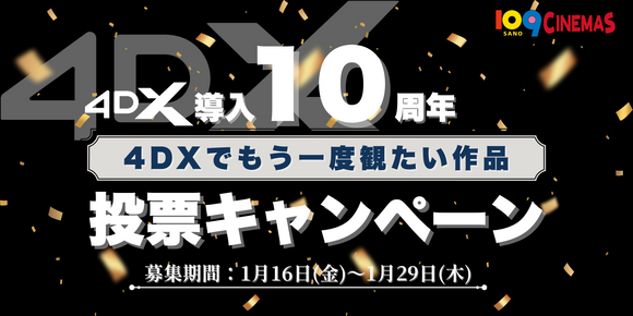 109シネマズ佐野は、4DX導入から10年が経過しました。2015年12月の導入以降、4DXをご利用いただいた地域のみなさまへ改めて感謝申し上げます。