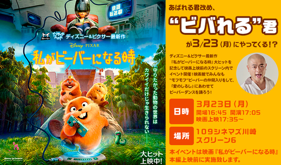 あばれる君改め、“ビバれる君”が3月23日(月)にやってくる!?ディズニー&ピクサー最新作『私がビーバーになる時』大ヒットを記念して